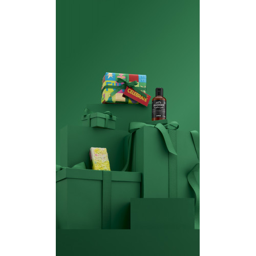 This flurry of fun was designed by Lush Gifts Creative Artworker, Sarah Wall, who created “A vibrant and playful design featuring a lively collage technique, bursting with colour and shimmering foil accents!”